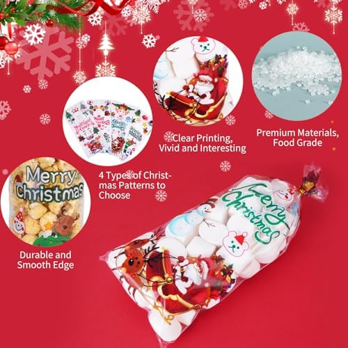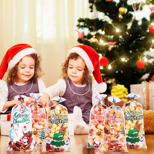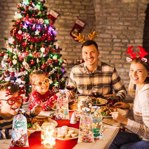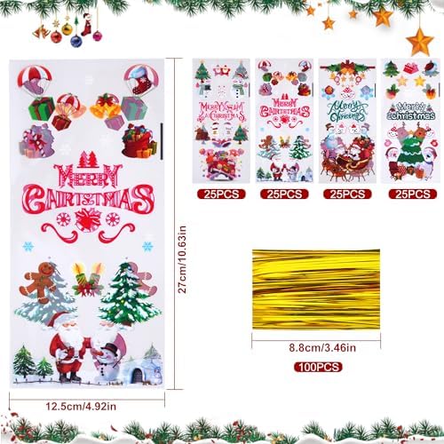 100 Pezzi Sacchetti Trasparenti per Confezioni Sacchetti Biscotti Natale Sacchetti Natalizi Bustine Natalizi Regalo Buste Natalizie Cellophane Regali Caramelle Sacchettini Alimentari Con Cravatte.