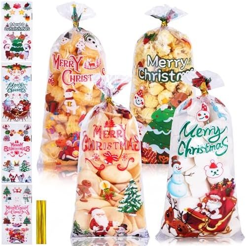100 Pezzi Sacchetti Trasparenti per Confezioni Sacchetti Biscotti Natale Sacchetti Natalizi Bustine Natalizi Regalo Buste Natalizie Cellophane Regali Caramelle Sacchettini Alimentari Con Cravatte.