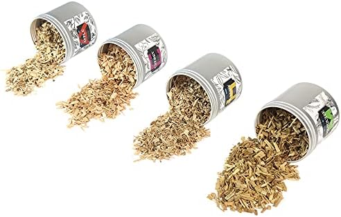 TMKEFFC Trucioli di Legno per Affumicatura Perfetto per Affumicatore da Cucina, Wood Chips 4 oz * 4 Lattine – 1x Mesquite, 1x Cherry, 1x Apple, 1x Hickory