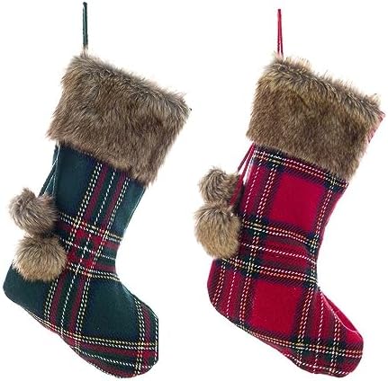 Blanc Mariclò’ Calza epifania, Natalizia Tartan Scozzese con Pelliccia e Tessuto 37x23x10 cm 2 Varianti (1pz) Verde