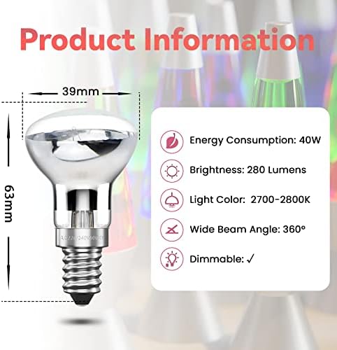 Bonlux E14 40W R39 Lava Lamps Riflettore Lampadine Faretti Dimmerabili Bianco Caldo 2400-2600K Edison Vite Base SES Lampadine Angolo del Fascio 360 Gradi 240V, Confezione da 2