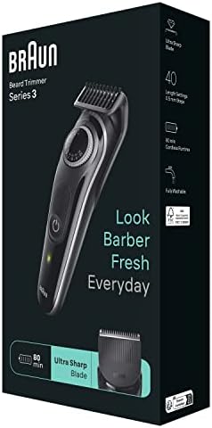 Braun Series 3 Rasoio Elettrico Barba, Con Lama Barba Ultra Affilata, Regolabarba Uomo 40 Lunghezze, 80 Minuti Di Utilizzo Senza Fili, BT3440 Nero