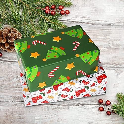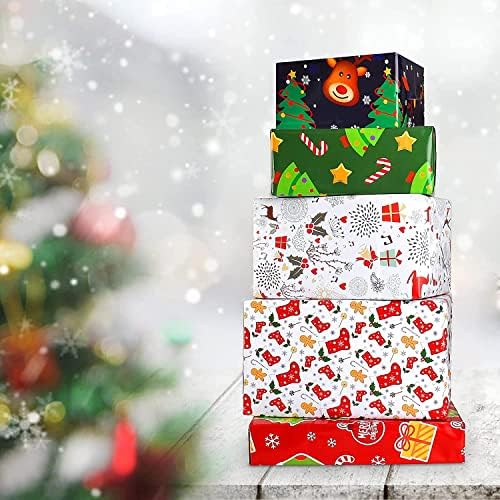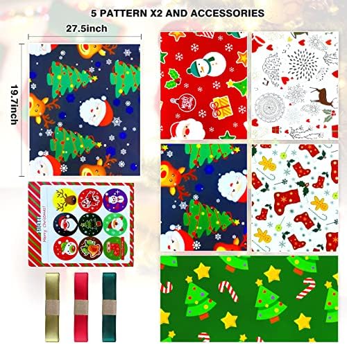 Carta Regalo Natale Bambini e Nastri,Set Carte Regalo Natalizia per Bimbi Bambino,Carta Natalizia per Regali e Rosso Blu Babbo Cervo Disegno,Carta da Regalo Natale,Carta da Pacchi per Incarto Regali