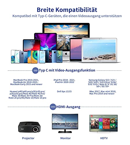 🟩 🛒 Prezzo: Cavo USB C a HDMI 3M 4K@60Hz [connettore placcato oro] Cavo HDMI USB Tipo C (Thunderbolt 3) Compatibile con MacBook Pro, MacBook, ipad Pro/Air, ChromeBook, Dell, HP, Samsung, Huawei, Galaxy S10