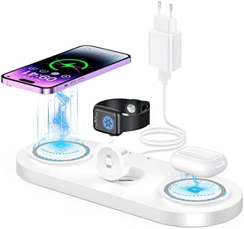 Glangeh Caricatore Wireless 3 in 1, Rapida Stazione Ricarica Compatibile con Apple, Ricarica Wireless Compatibile con iPhone 15 14 13 Pro Max, Airpods 3 2 Pro, iWatch Serie, per Casa/Viaggio/Ufficio