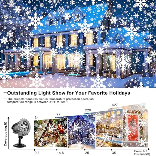 GuKKK Proiettore Natale Esterno, Proiettore Luci Natalizia Per Esterno LED con Telecomando, Proiettore Fiocchi di Neve da Impermeabile IP65 per Natale, Giardino Prato, Decorazione Della Festa