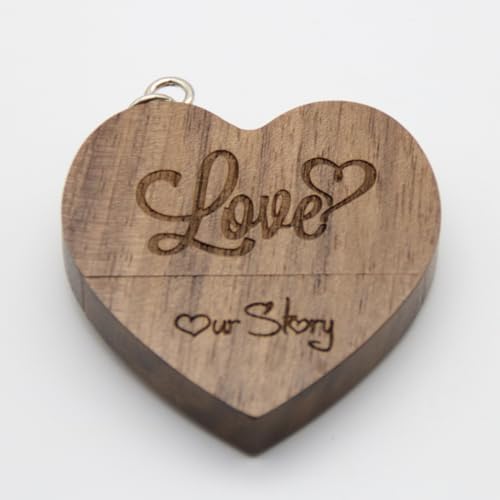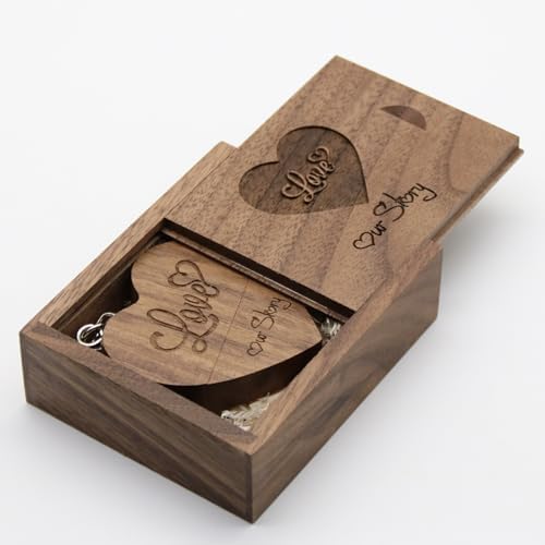 LXSINO Chiavetta USB in legno da 32 GB e scatola USB con incisione “Love” e “Our Story” per matrimoni, sposi e genitori, fotografi (noce, 32 GB USB3.0)