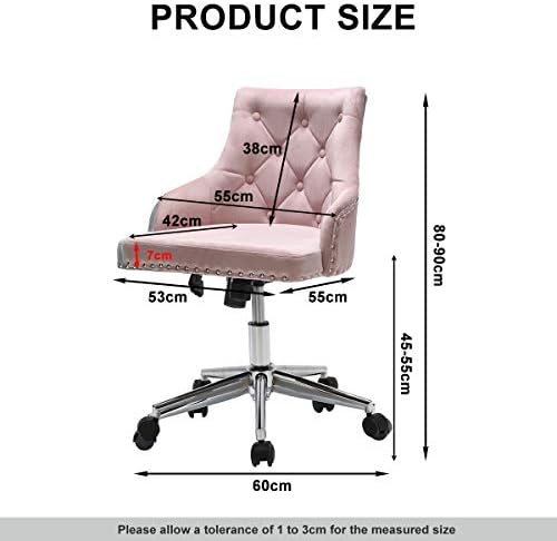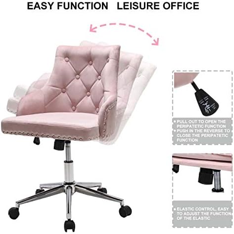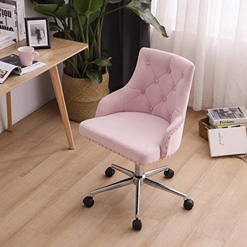 Sedia Scrivania Cameretta con Rotelle Rosa Velluto Tessuto Sedia Ufficio Ergonomica senza Braccioli Comoda Altezza Regolabile Sedia da Lavoro Girevole Funzione di inclinazione per Ragazza