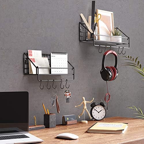 SONGMICS Mensole da Parete Stile Industriale in Metallo carico 15 kg/scaffale Set di 2 con 10 Ganci, per Camera da Letto, Soggiorno, Cucina, 30 x 12 x 13 cm, 40 x 12 x 13 cm, Nero LFS02BK