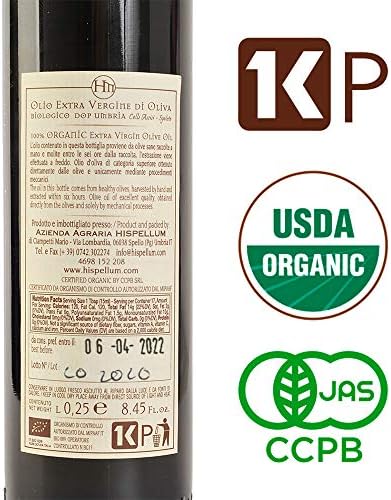 Terre Rosse – Olio Extravergine di Oliva Biologico Spremuto a Freddo – Monocultivar Moraiolo – Certificazioni DOP Umbria Colli Assisi Spoleto e Kosher/P – Campagna Olearia 2023-1 Bottiglia da 250 ml